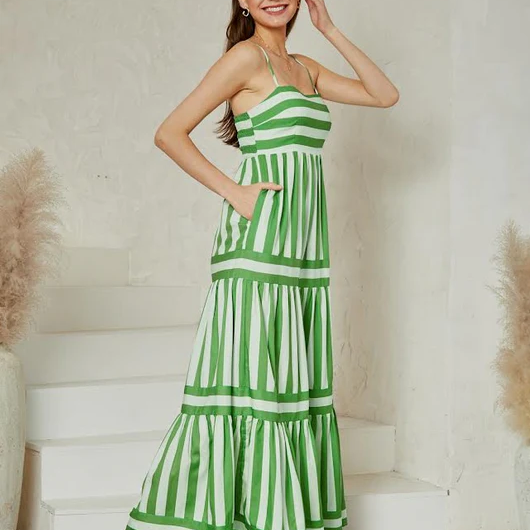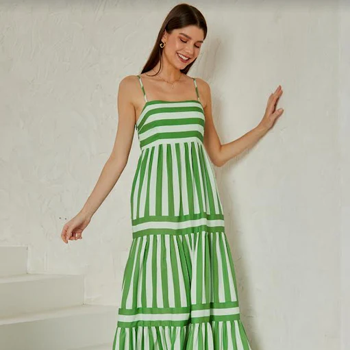 Cet été, laissez-vous séduire par Baxa™, la robe longue à bretelles qui allie fraîcheur, élégance et liberté. Son imprimé rayé tendance, son dos nu séduisant et son tissu ultra doux et extensible en font une pièce incontournable de votre dressing estival